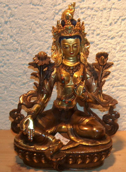 Grüne Tara teilvergoldete Kupferstatue B 20cm | Cintamani Buddhas | Cintamani