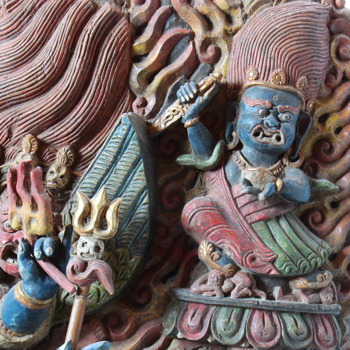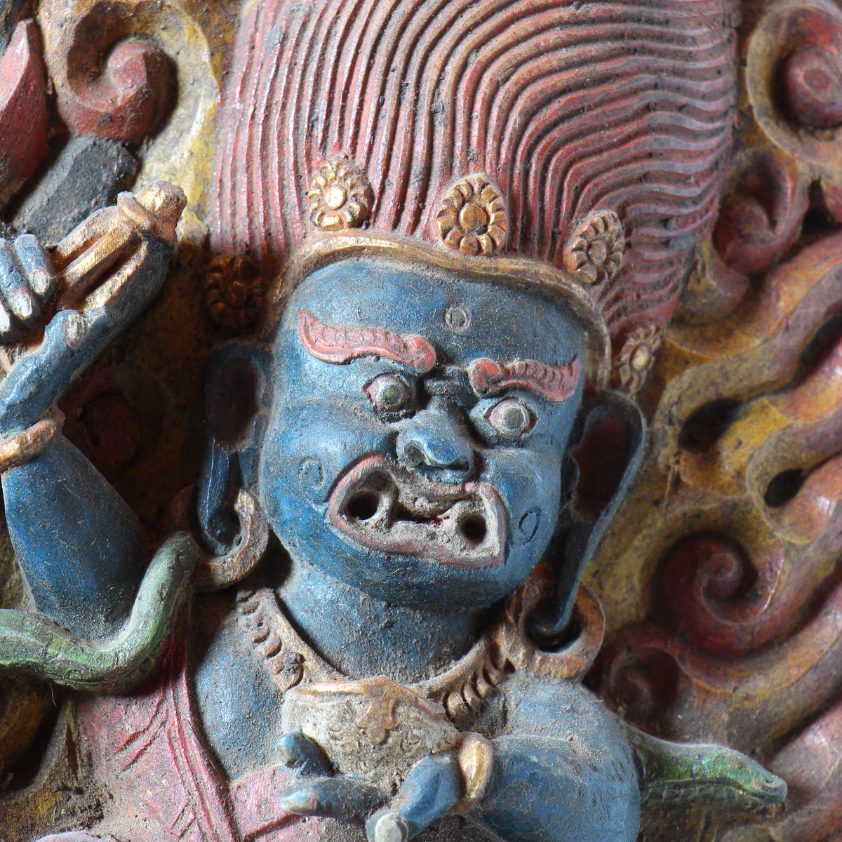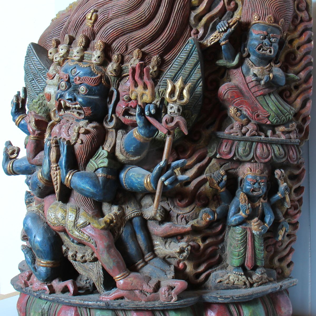 Buddha Vajrakila Stele mit Vajrapani und 3 Formen von Mahakala 42cm x 42cm