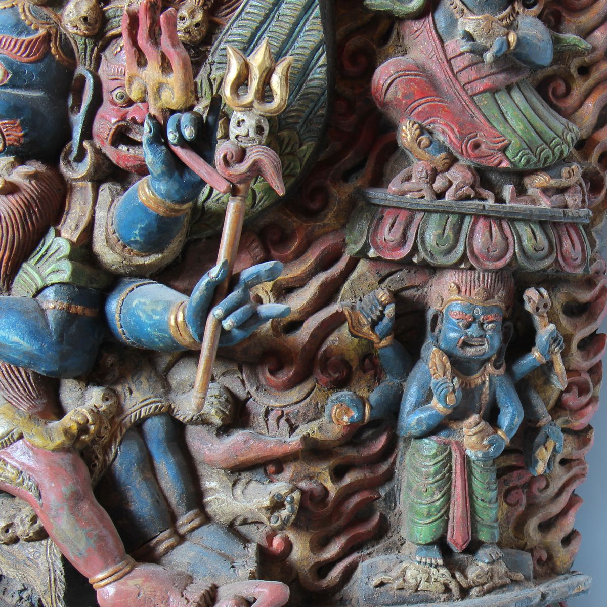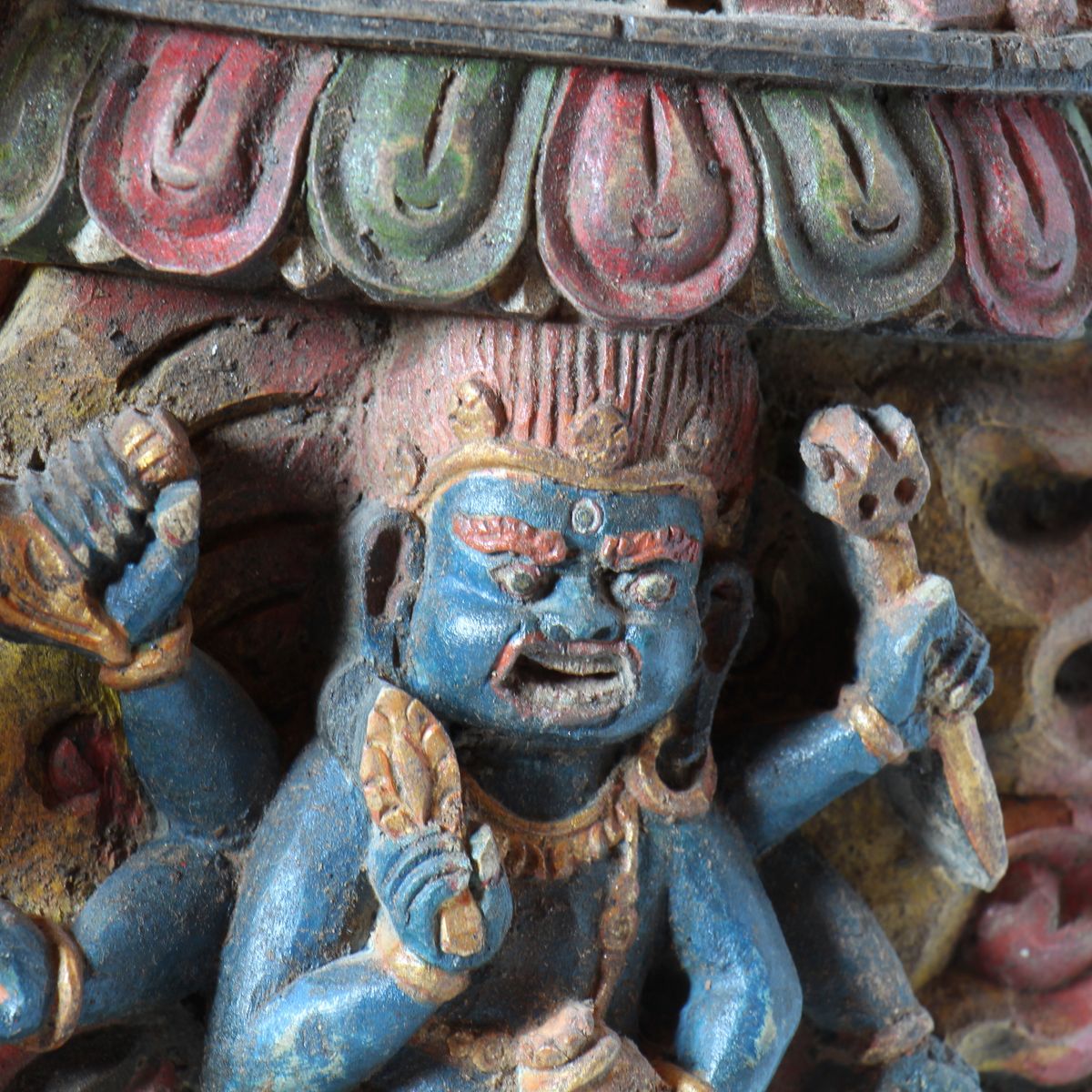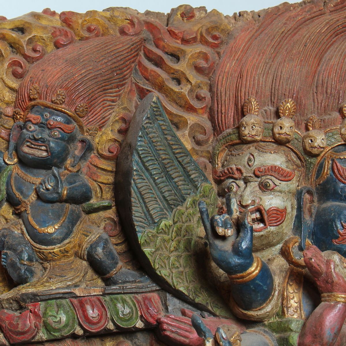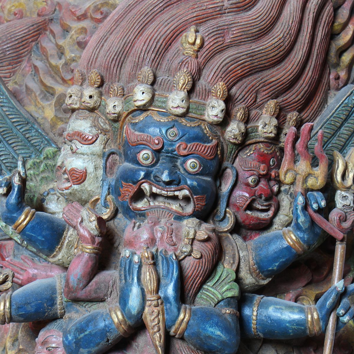 Buddha Vajrakila Stele mit Vajrapani und 3 Formen von Mahakala 42cm x 42cm